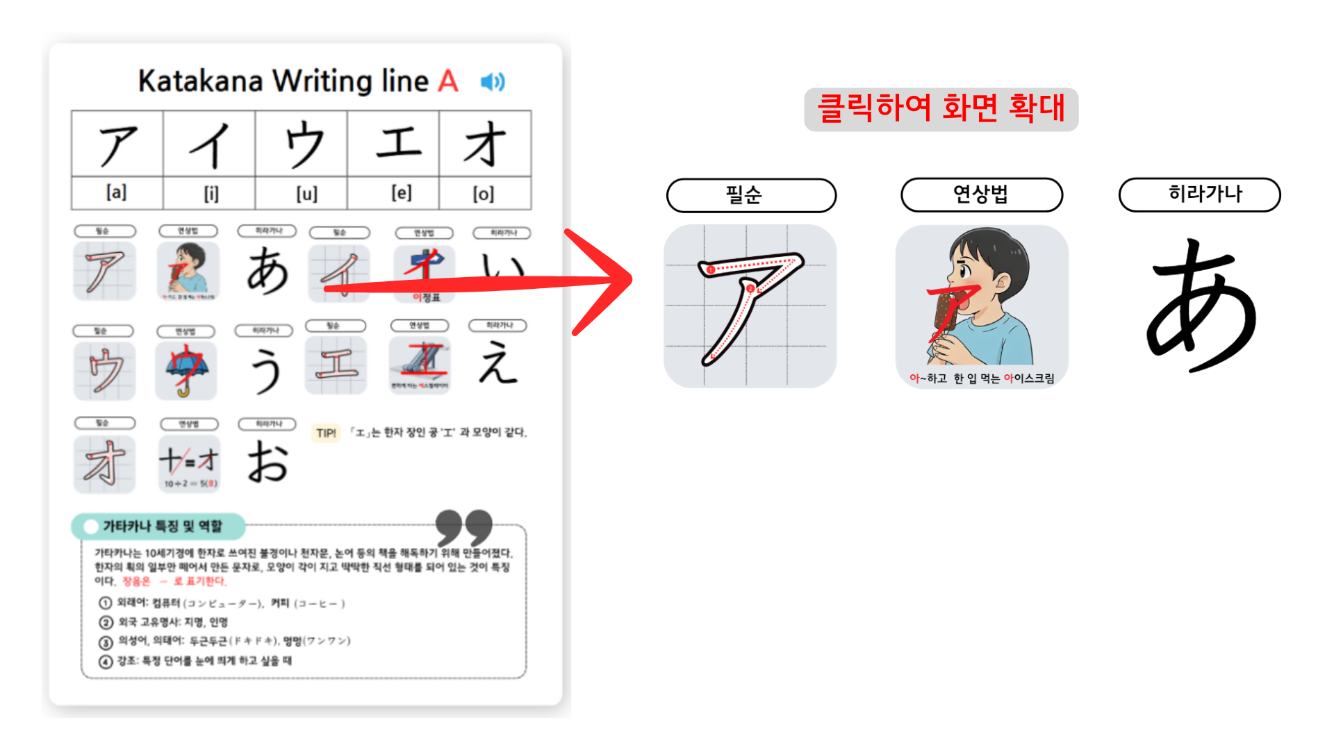 가타카나가 어렵다는 편견을 깨드릴 준비가 되었습니다. 아래 링크를 통해 A행(아행) 학습 콘텐츠를 무료로 체험해 보실 수 있습니다. 아래 링크를 클릭하여 PC, 태블릿, 모바일 어디서든 가타카나 공부를 시작해 보세요!