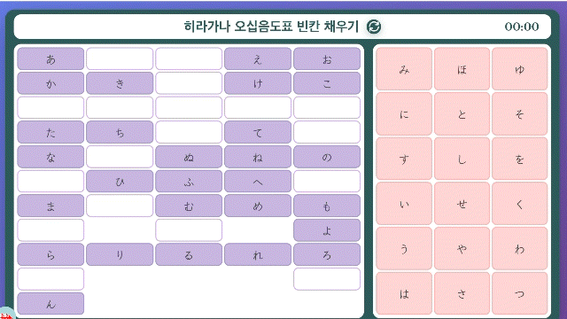 ② 히라가나 오십음도 빈칸 채우기(완전 개편):
