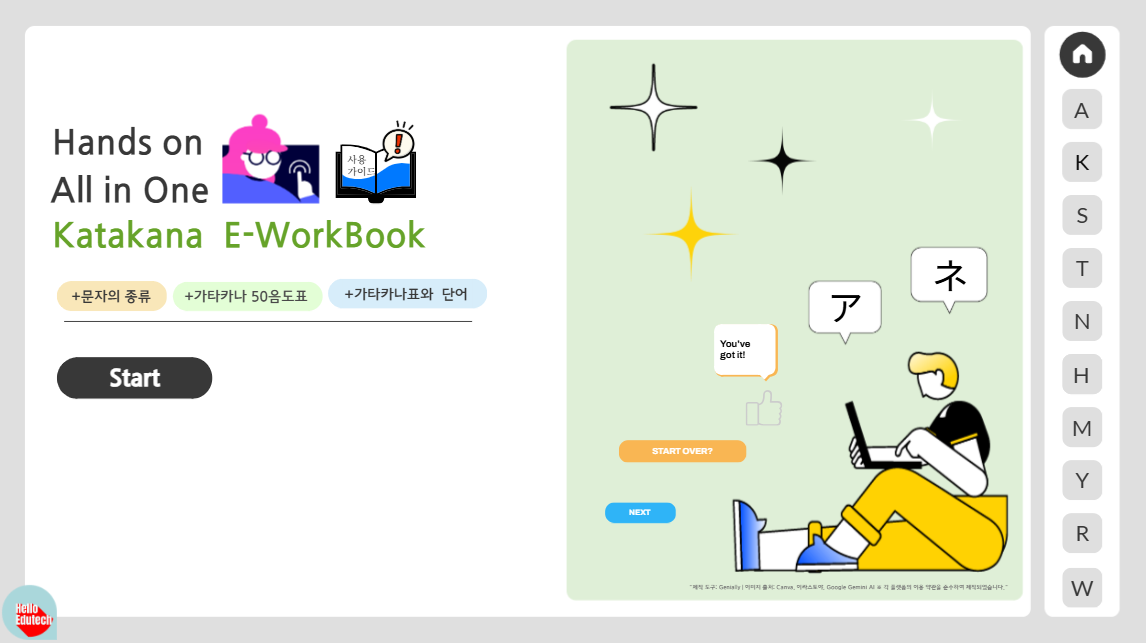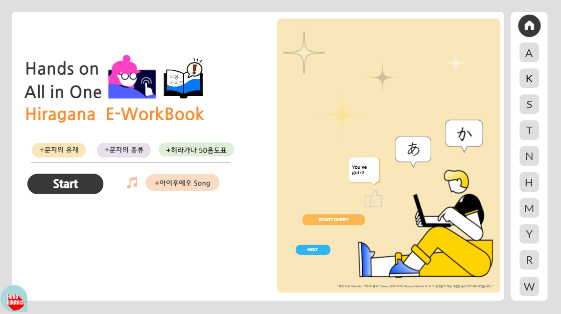 안녕하세요! 일본어 수업의 질을 높이고 선생님의 시간을 아껴드리는 Hello, EduTech입니다. 현직에서의 고민과 에듀테크의 노하우를 집약한 [핸즈온 올인원 히라가나 & 가타카나 E-워크북] 2026년 풀 콘텐츠를 드디어 공개합니다.