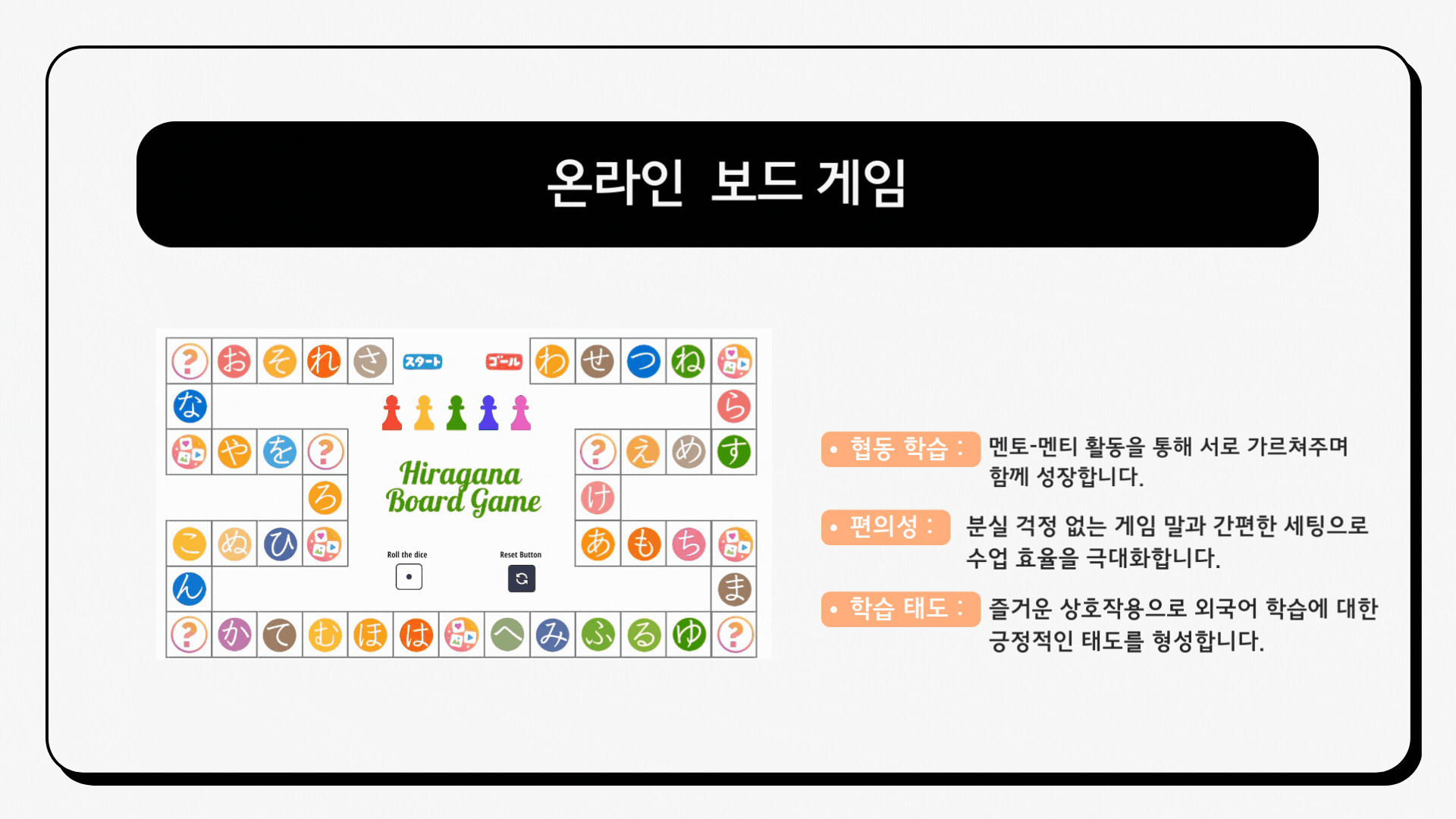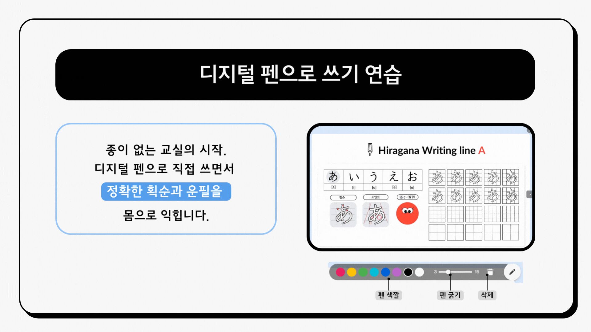 Hello, EduTech가 제공하는‘히라가나 수행평가 툴’을 활용하면 에듀테크의 진정한 가치를 경험하실 수 있습니다.