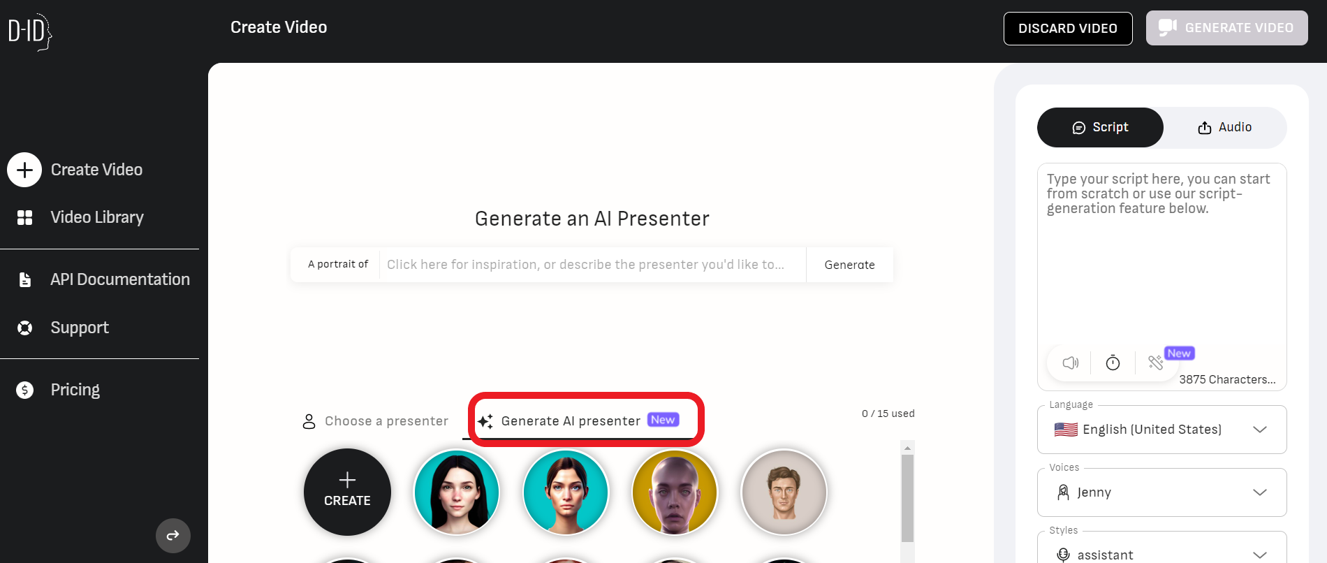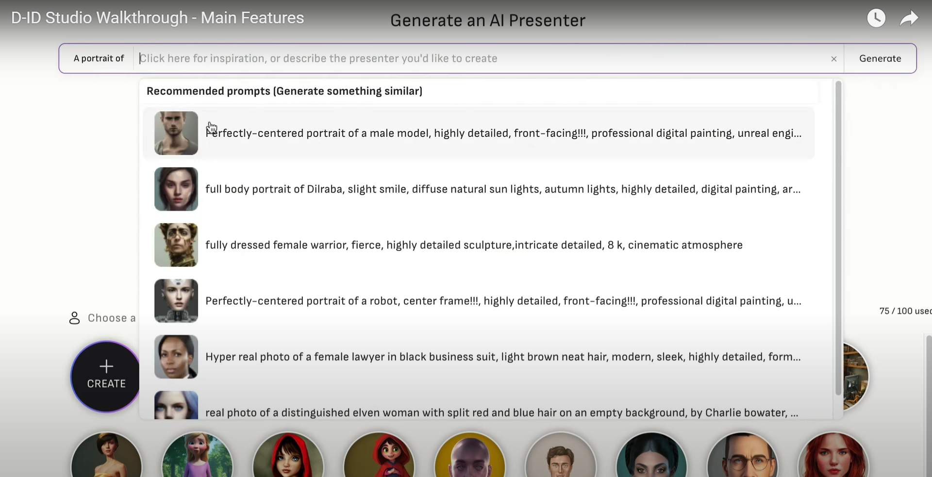 1. D-ID에서 제공하는 디지털 휴먼 중 선택