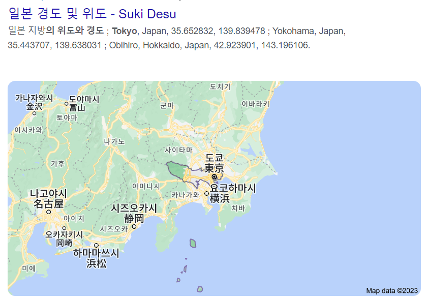 ① 구글에서 일본 도쿄의 위도와 경도 검색