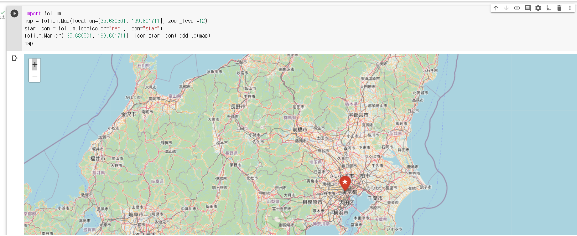 Google Colab에서 복사한 파이썬 folium 코드를 붙여넣기하여 실행하면 다음과 같이 출력된다.