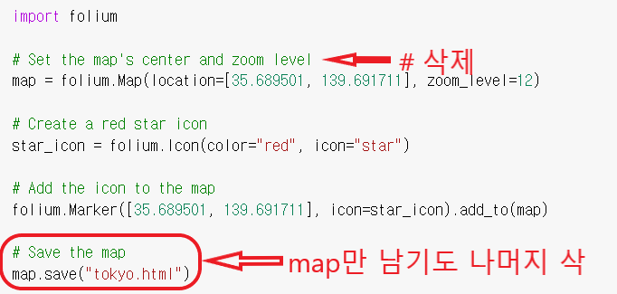 # 은 코드에 대한 설명이므로 삭제하고, 마지막 map. save은 파일 저장이므로, 이 부분도 삭제 한다.