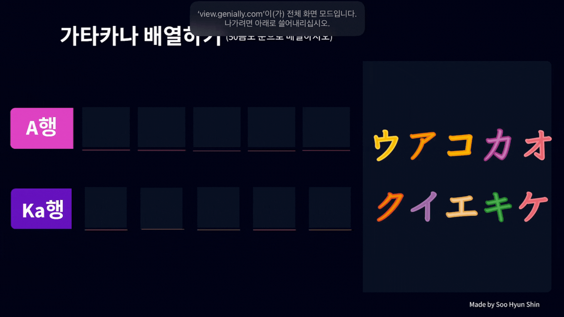 ① 색깔 변화로 피드백을 주는 가타카나 배열하기